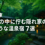 ぜひお気に入りの“森の隠れ宿”を見つけて、日常を忘れる癒しの時間を過ごしてくださいね。静けさと温泉の旅が、きっと心を満たしてくれますよ。さっそく宿一覧から気になる宿をのぞいてみてくださいね♪